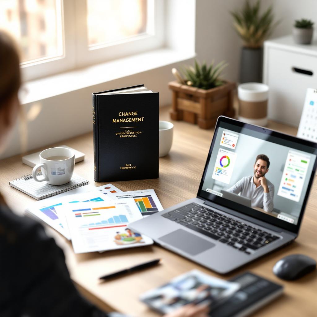 | Change Management Handbook | Comprehensive 250-page manual formatted in 8.5″ x 11″ dimensions, printed on 100% recycled paper with a matte finish cover, providing step-by-step guidance on best practices in change management. |
